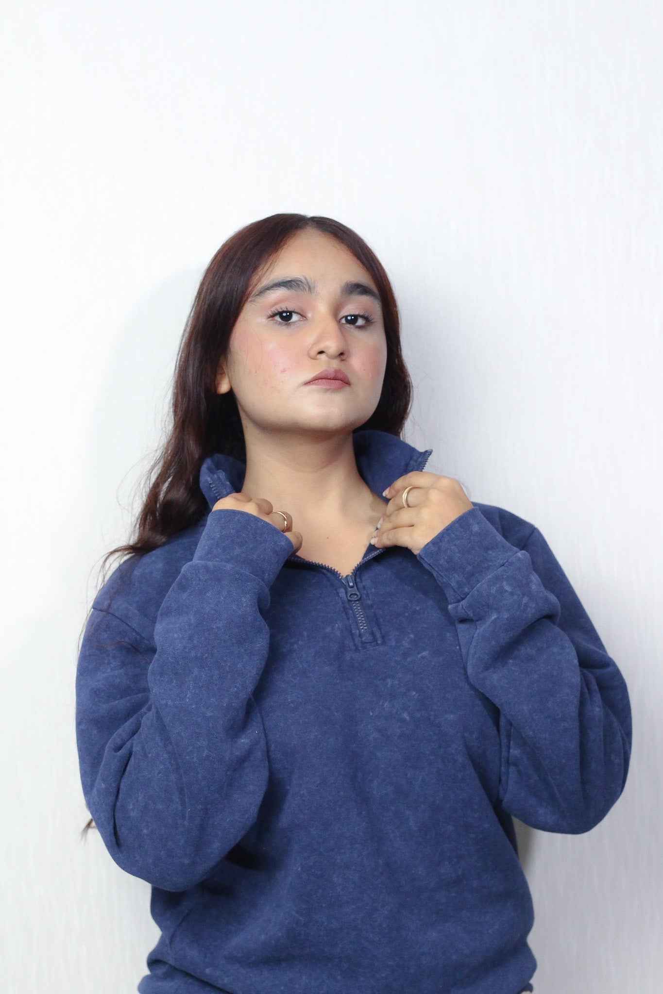 blue Washed Quarter Zipper – Premium Comfort, Effortless Style