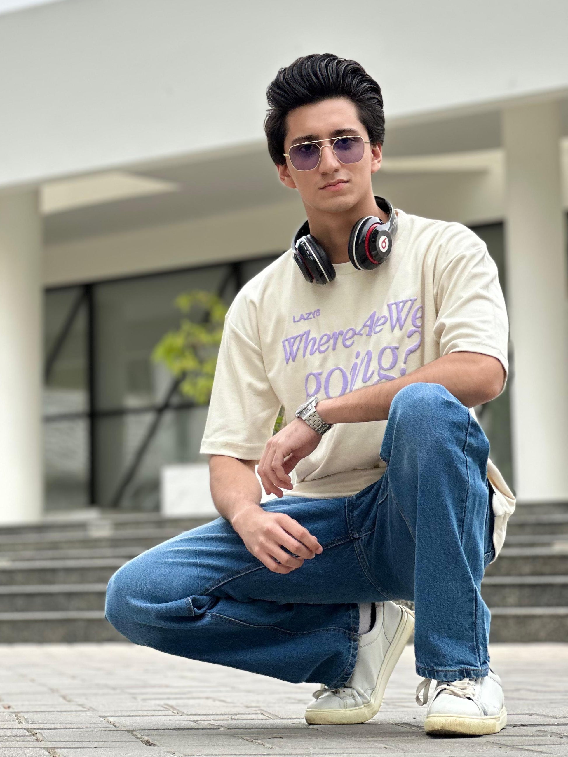 Express curiosity, style, and comfort all at once with the Lazy6 “Where Are We Going?” oversized t-shirt. Made for movement and meaning, this unisex tee is crafted in a soft beige hue and features a relaxed, drop-shoulder silhouette that gives off a chilled, effortless vibe.