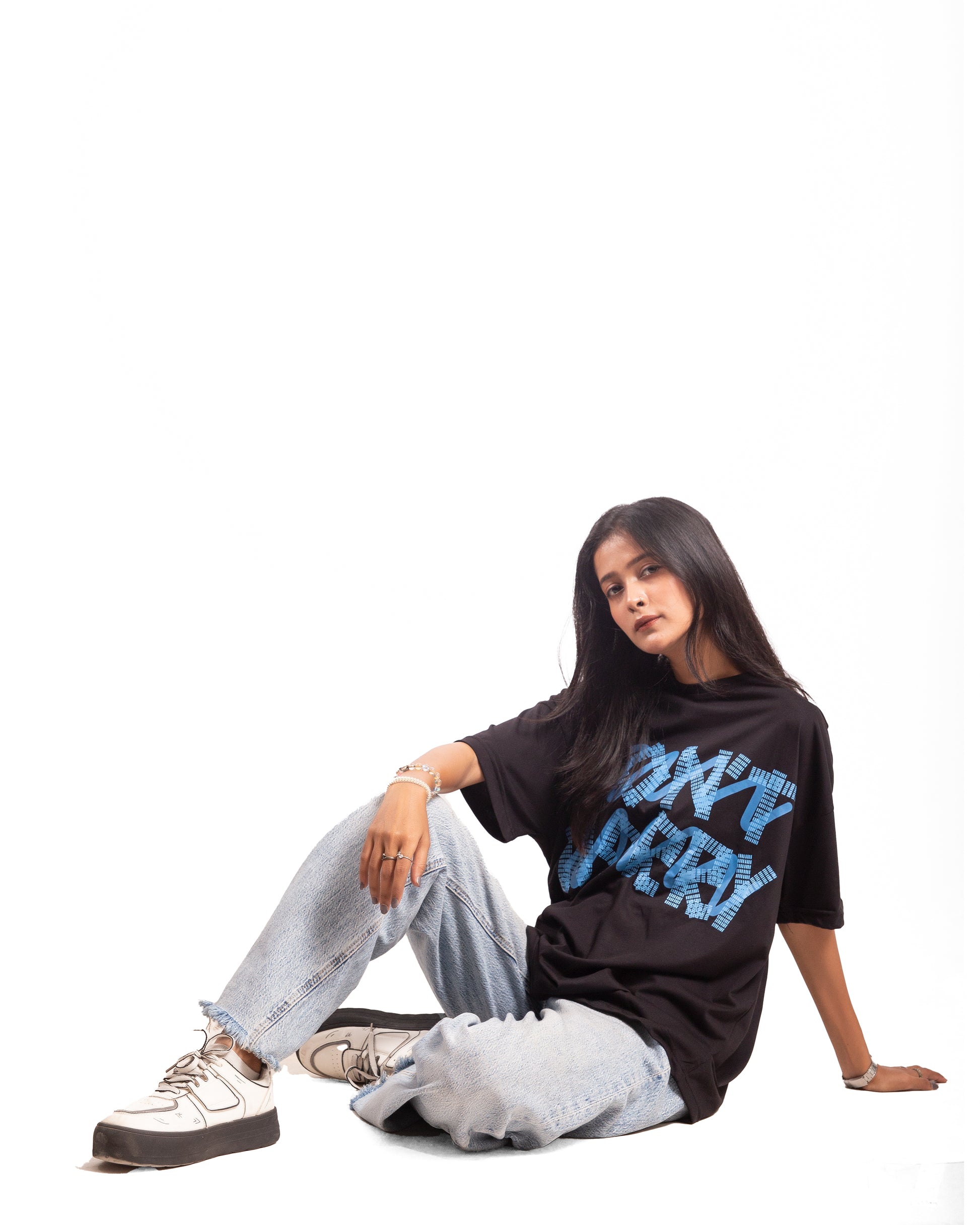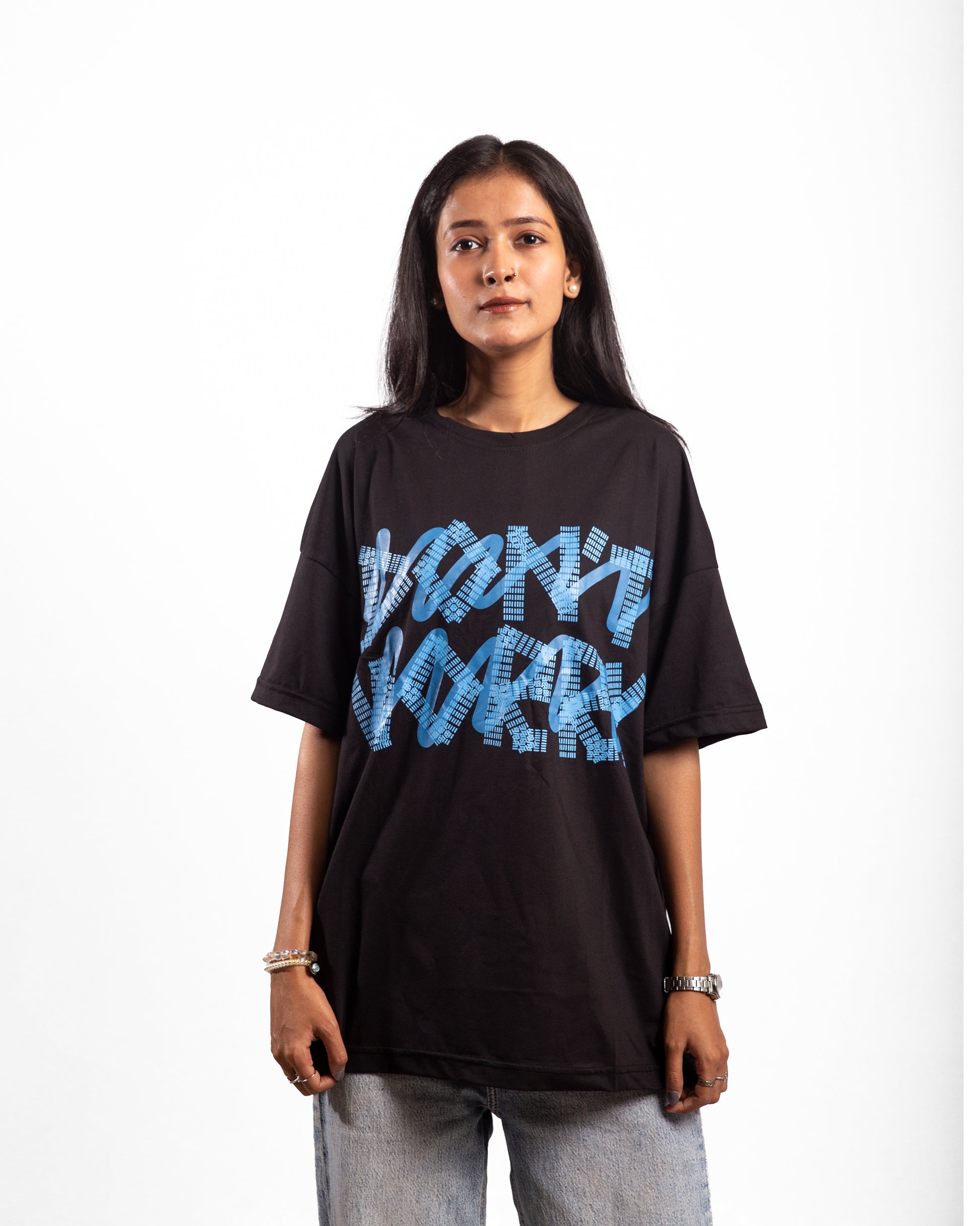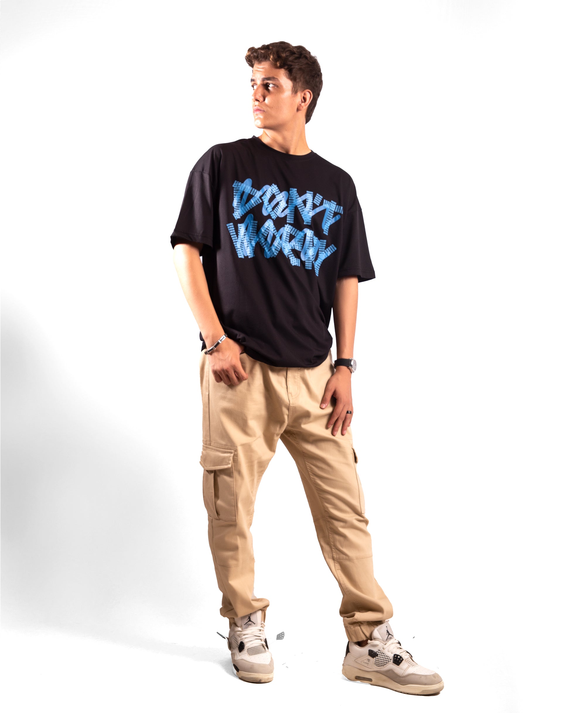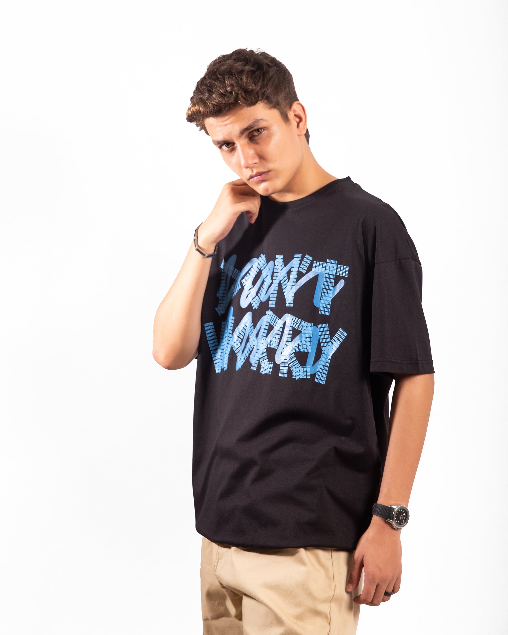 Meet your new favorite staple: the Don’t Worry oversized t-shirt by Lazy 6. Designed for everyone and made to move with you, this laid-back black tee features a bold screen-printed “Don’t Worry” message across the chest in calming blue, making it a go-to piece for days when you just want to keep it simple—and stay in your zone.