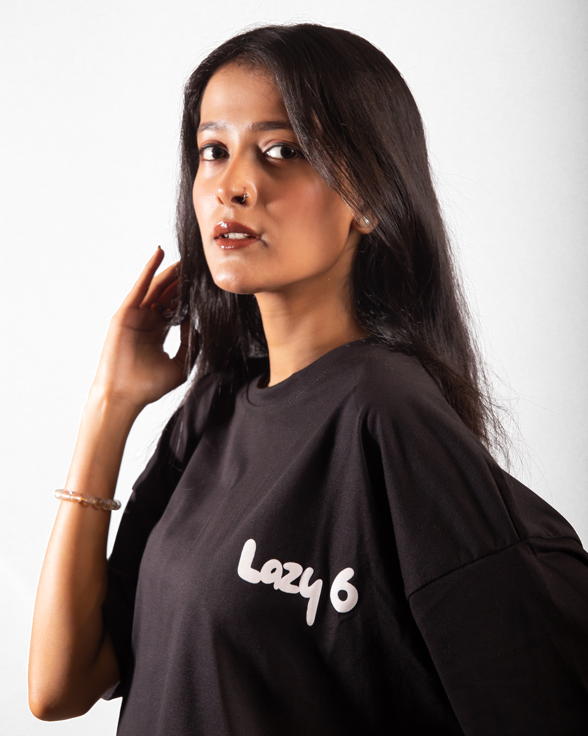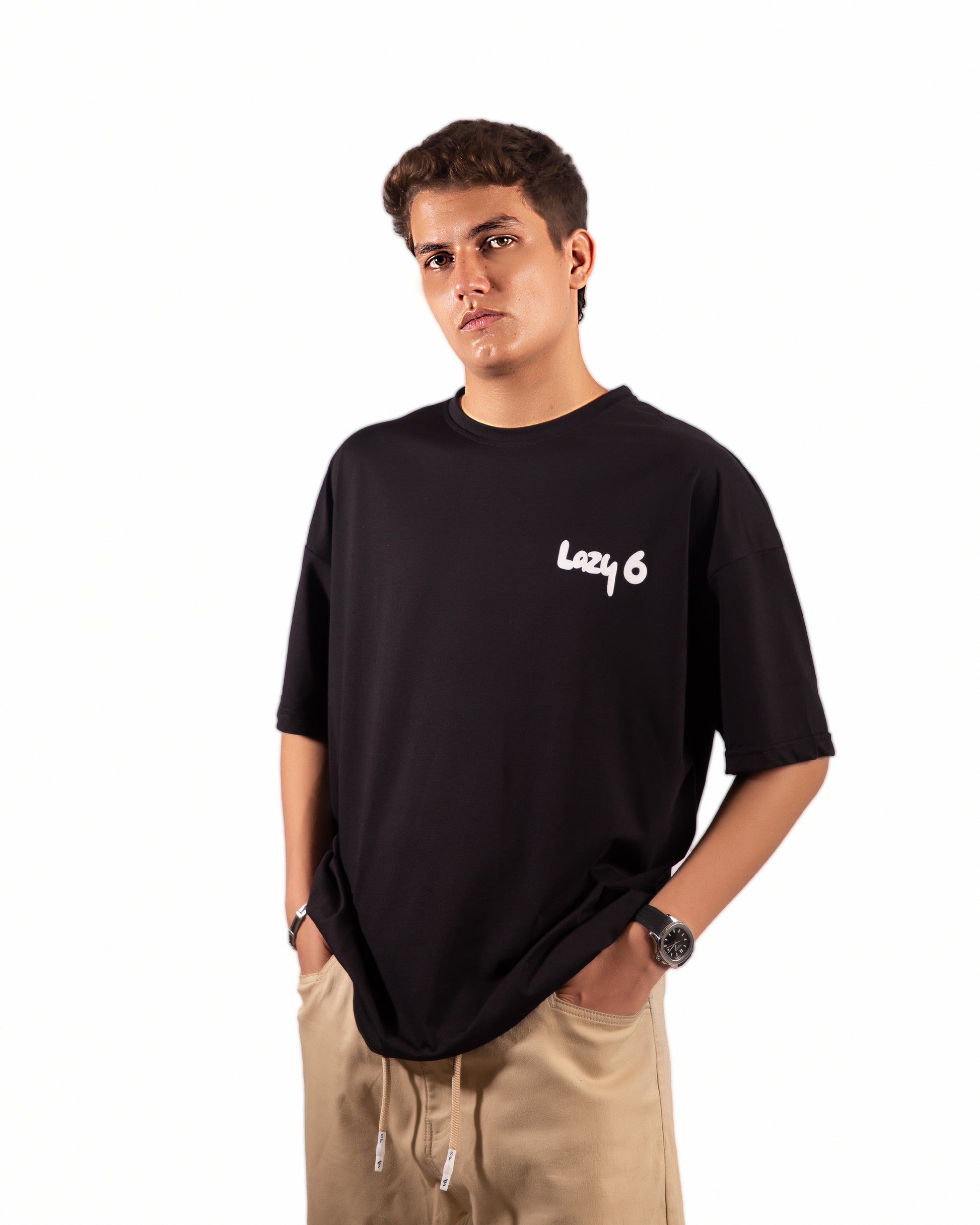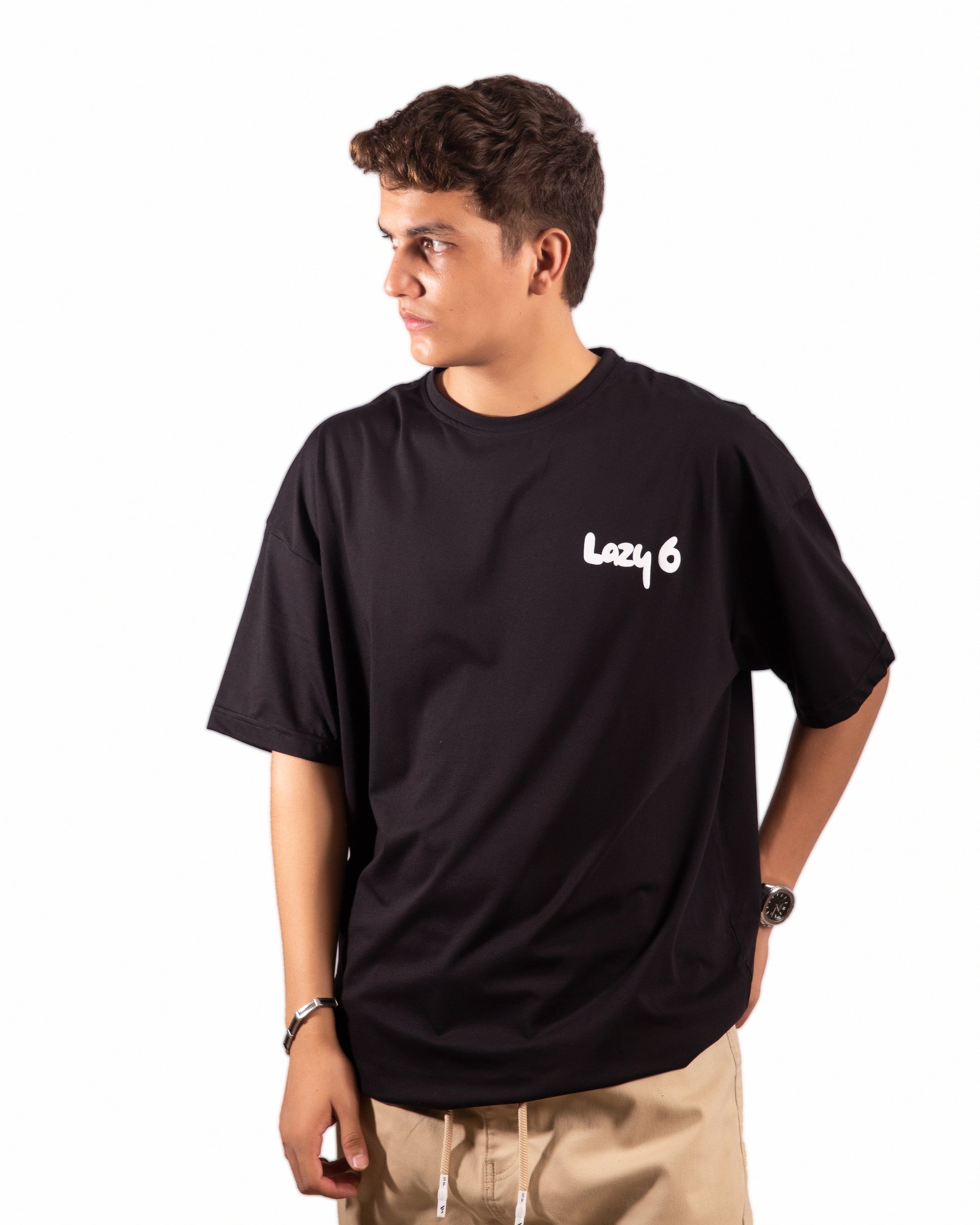 Puff-printed "Lazy 6" logo on front chest