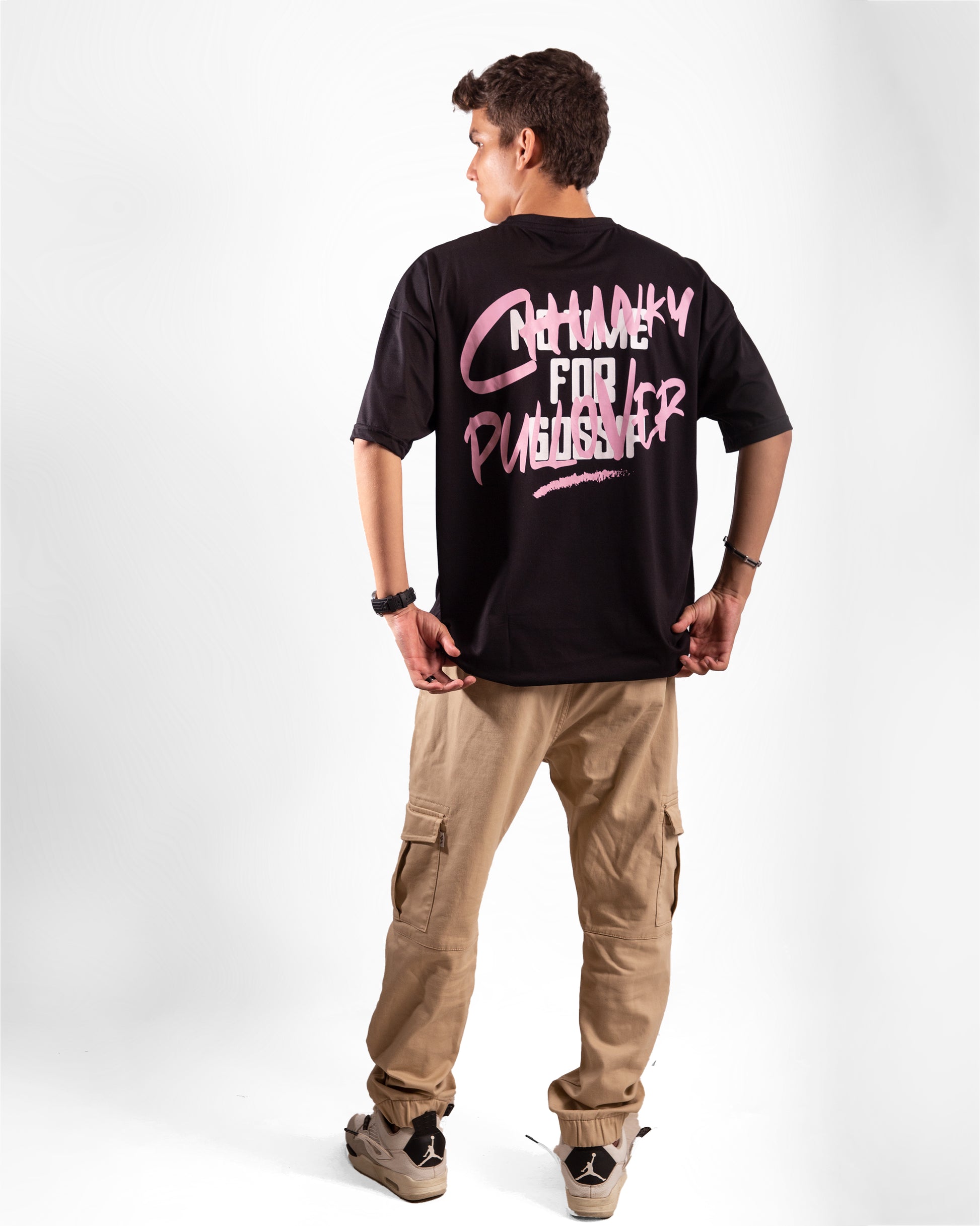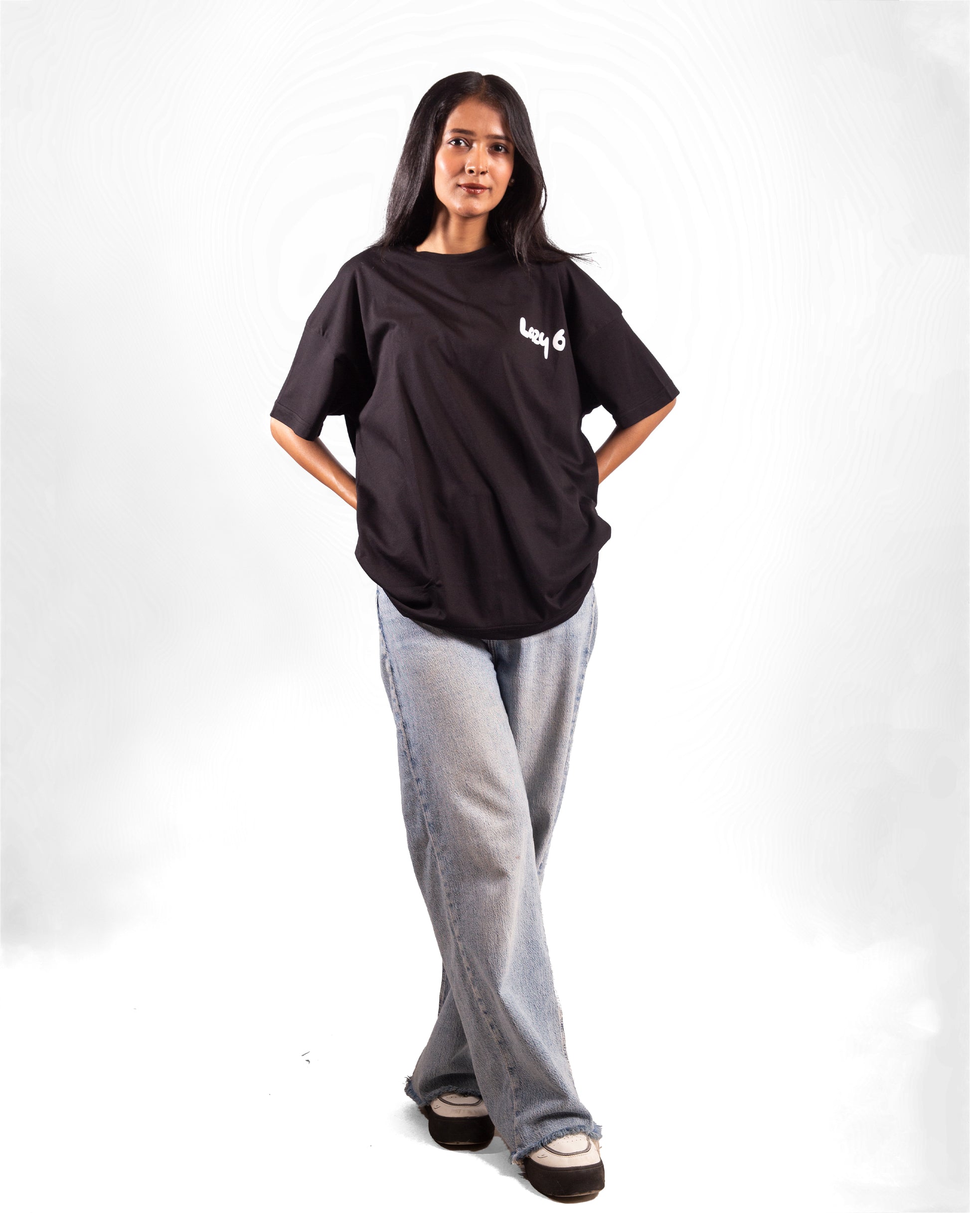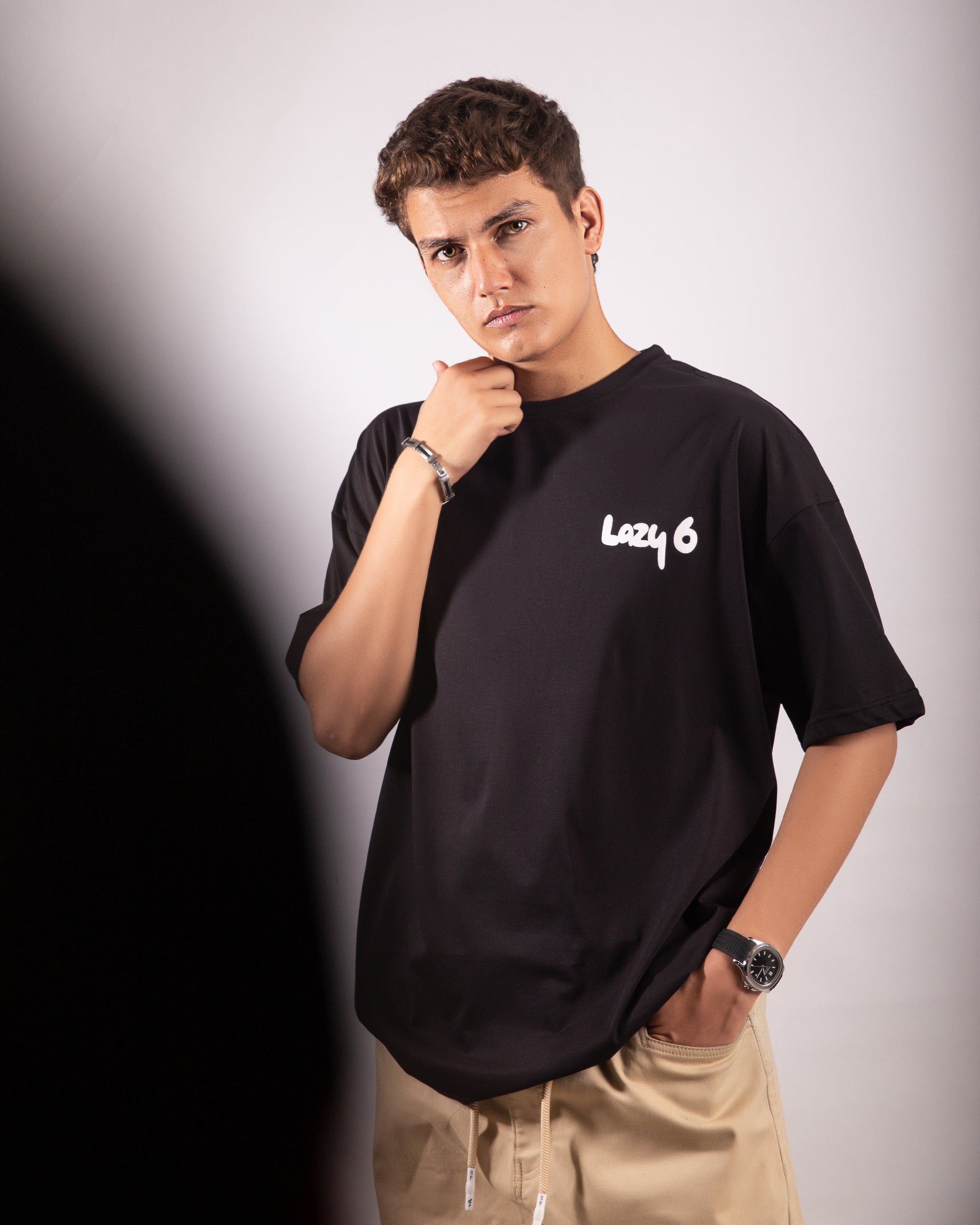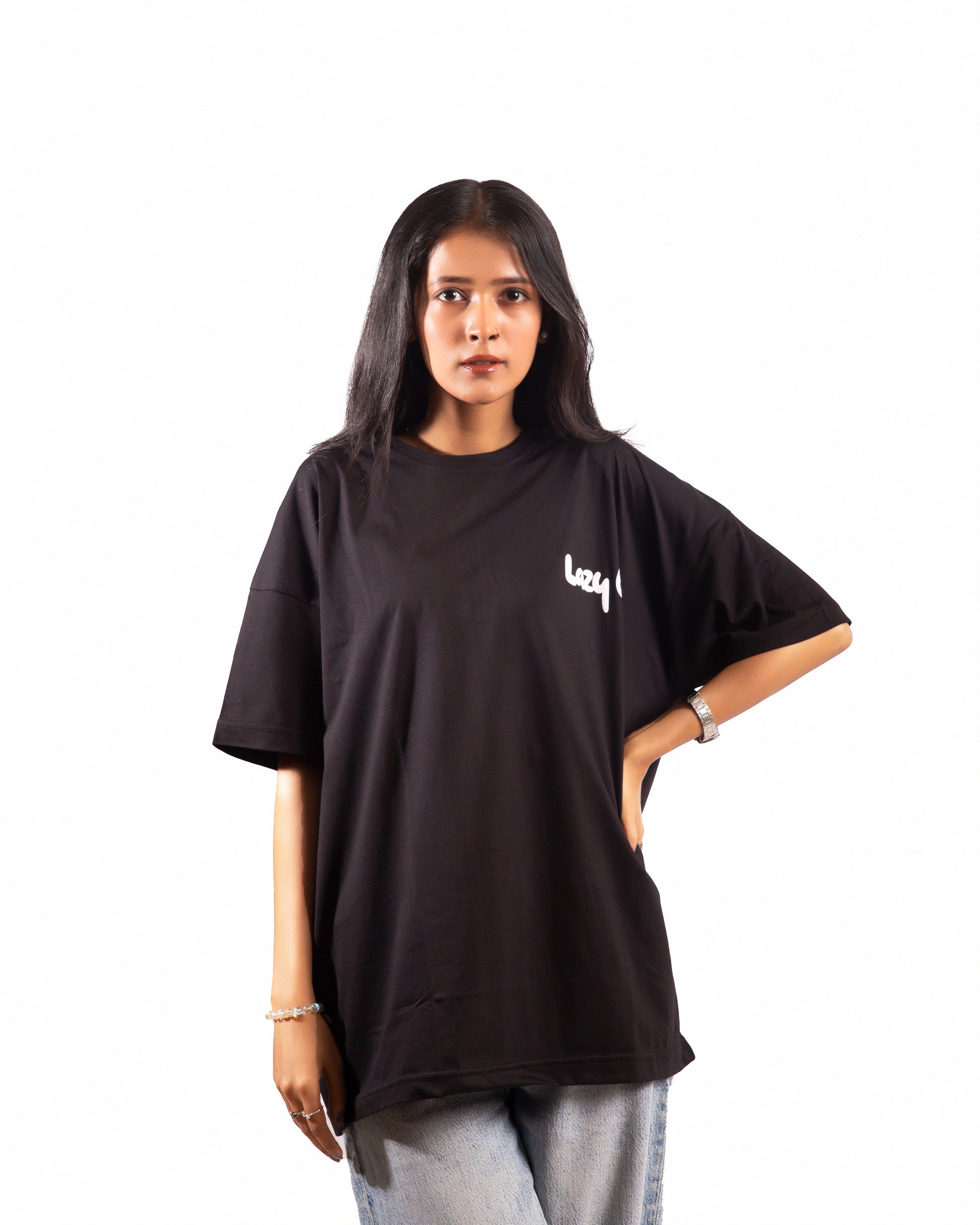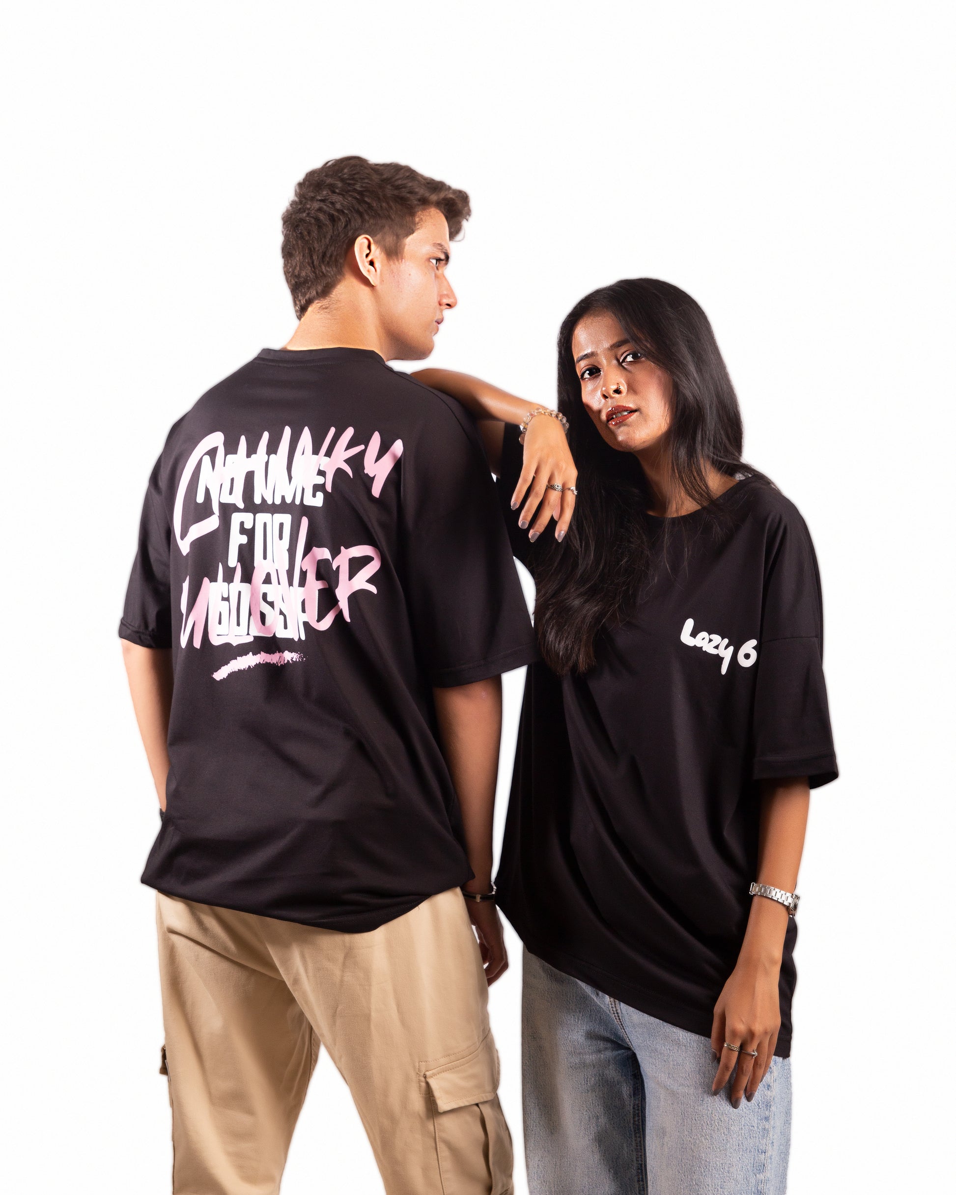 The Chunky Polover by Lazy 6 redefines statement streetwear. This black oversized tee offers effortless style and comfort with a bold graphic edge. On the front, the minimalist "Lazy 6" logo sits neatly on the left chest in a puff print finish, adding subtle texture and brand identity. The back features a large expressive graffiti-style graphic in contrasting pink and white tones, making it a standout piece from every angle.