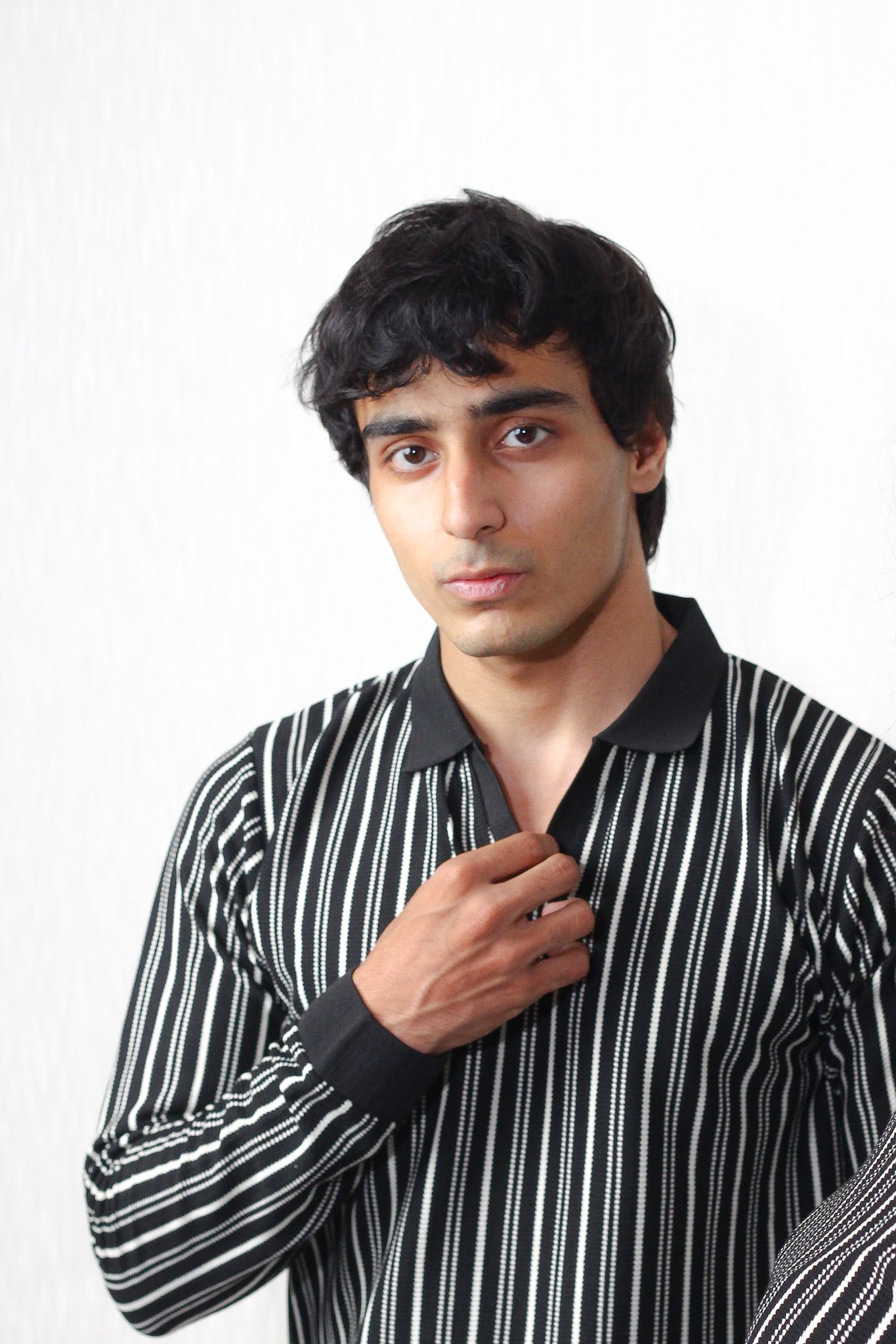 • Collar: Crisp, solid black polo collar and ribbed V-neck.