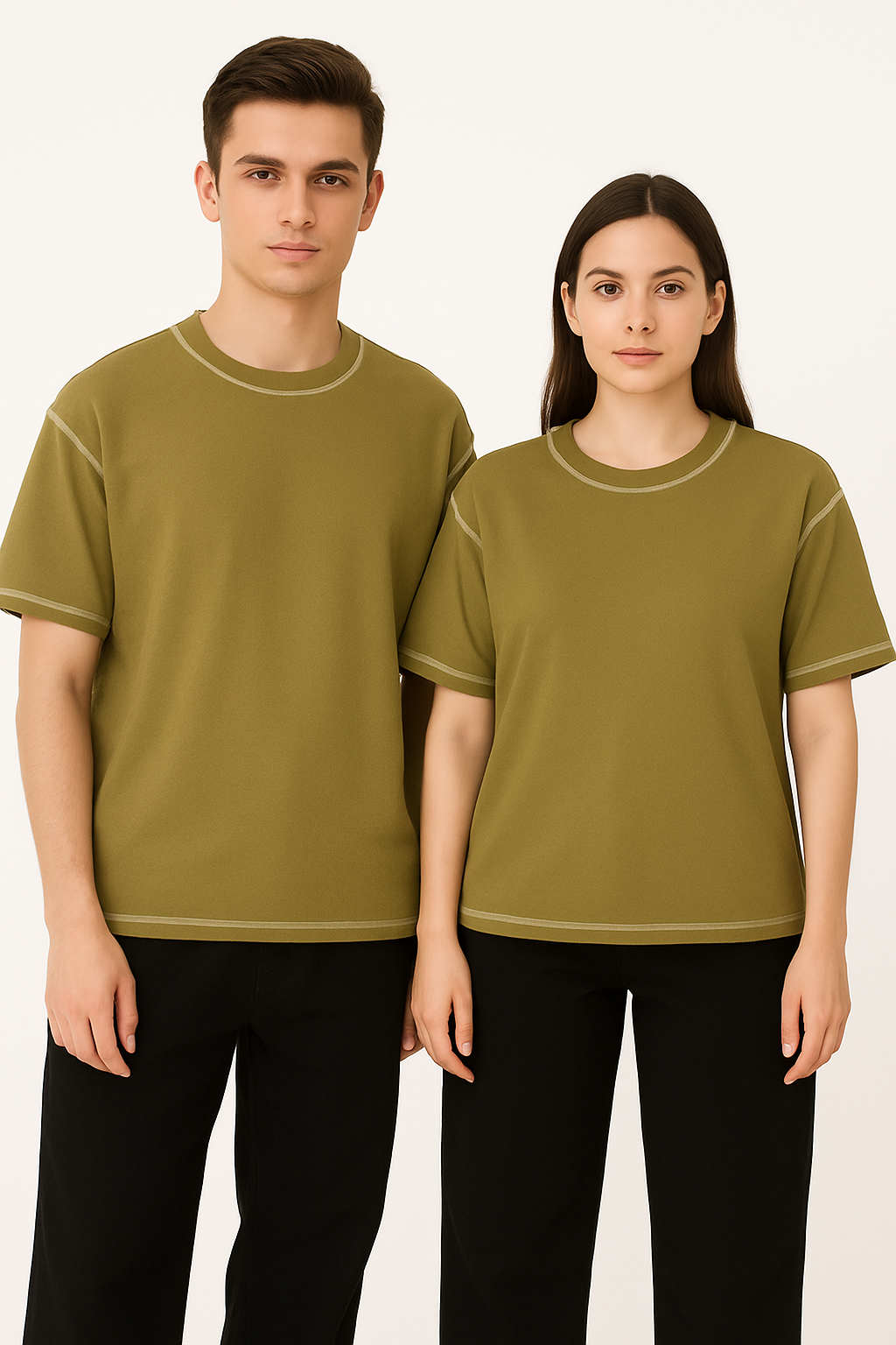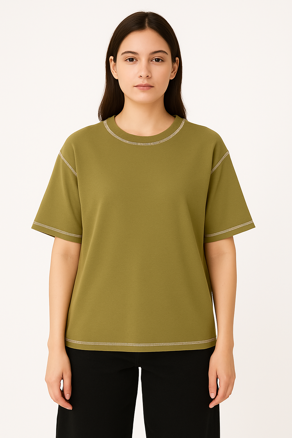 Subtle in color but strong in character β this *biscuit green oversized t-shirt* is a versatile wardrobe essential that balances comfort with understated edge. Crafted entirely from *knitted fabric*, this t-shirt delivers a soft hand-feel and structured drape that moves with you.